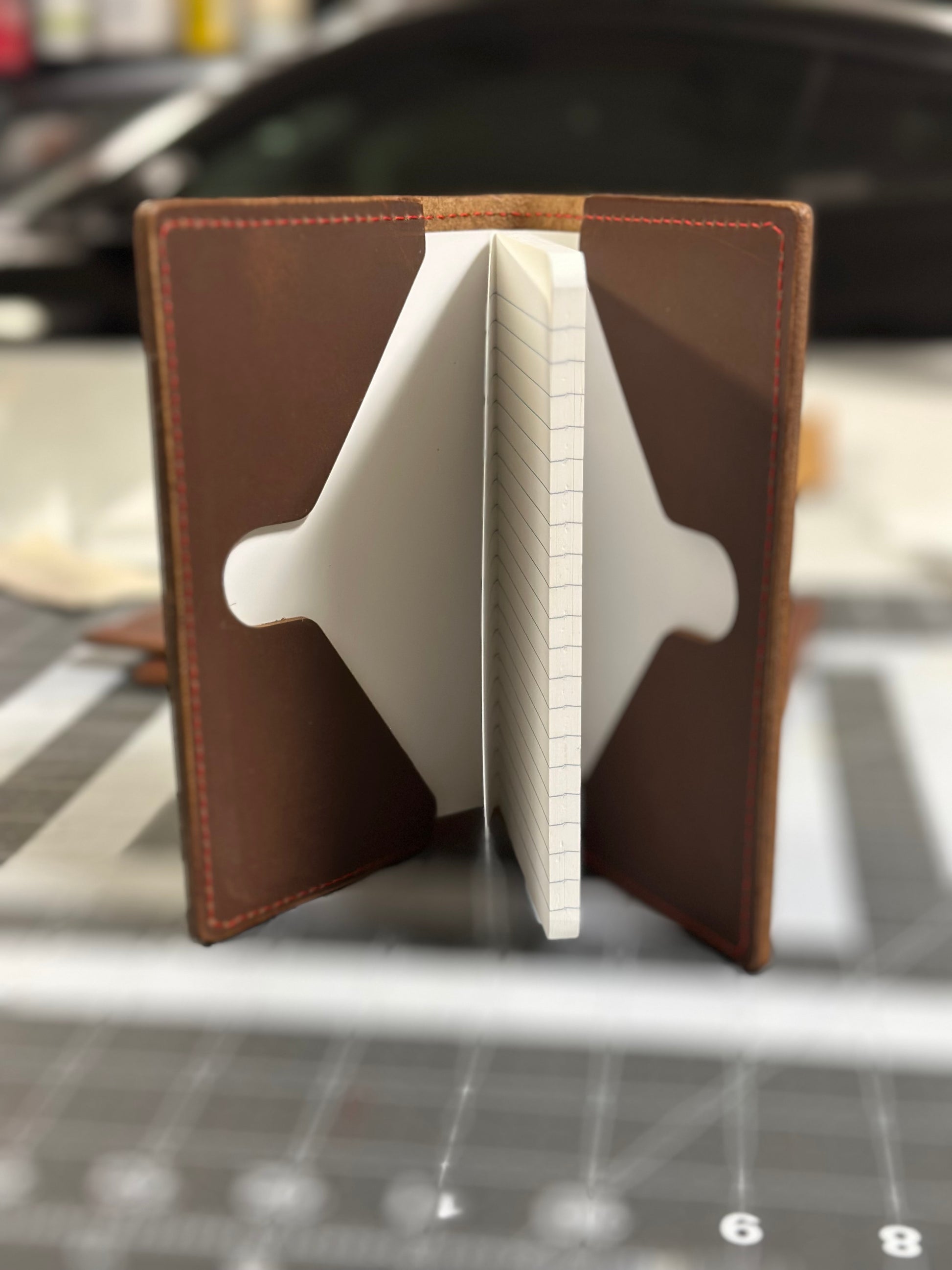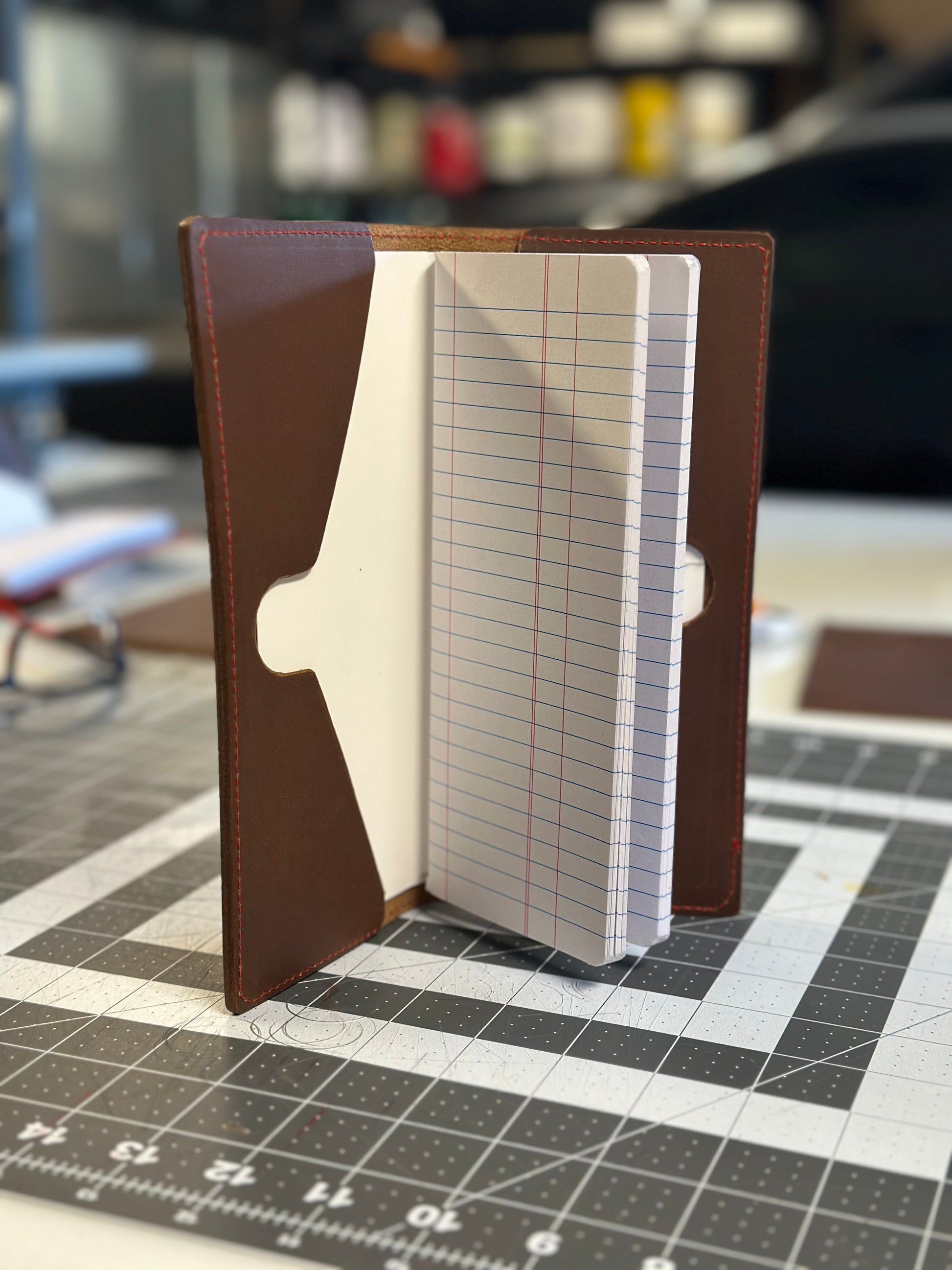 Built with 5 oz Water Buffalo hide, this leather tally book is more durable than others on the market. You'll notice the thickness of this leather is 2x most leather tally book covers, medium firm in pliability, yet soft to the touch and not bulky in your back pocket. Featuring finished edges inside and out, the design is timeless and premium. My unique pocket design assists when you load new paper by allowing the owner to "pull" in the cover almost to the stitching. The thread is ultra-tough UV coated polyester, which is sun and chemical resistant. This thread will probably outlast the leather even in harsh environments like offshore oil and gas operations...where I prototyped and field-tested the design!